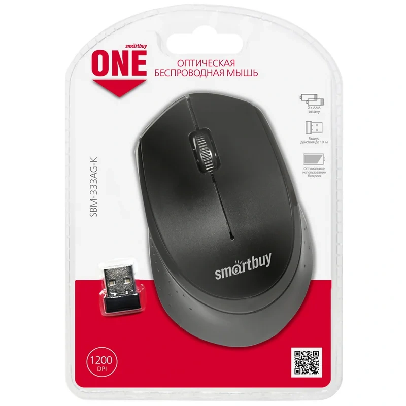 Мышь беспроводная Smartbuy ONE 333AG-K, черный, USB, 3btn+Roll