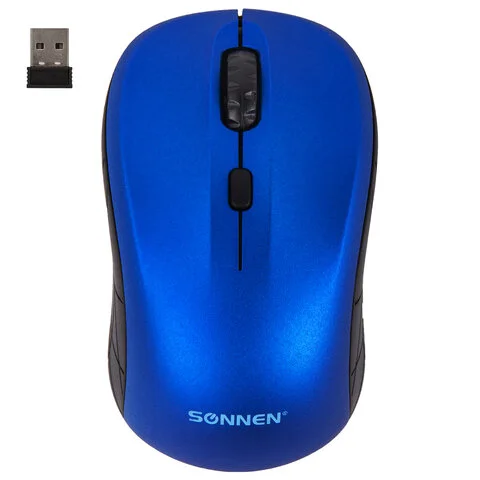 Мышь беспроводная SONNEN V-111, USB, 800/1200/1600 dpi, 4 кнопки, оптическая, синяя, 513519