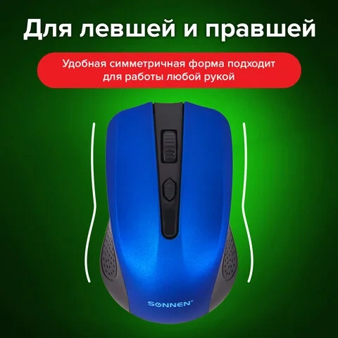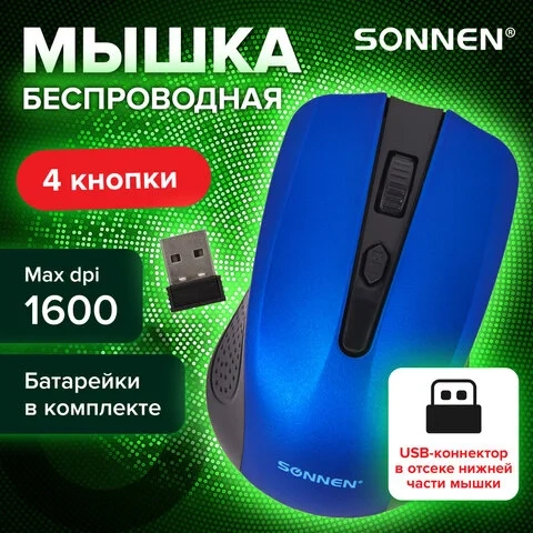 Мышь беспроводная SONNEN V99, USB, 1000/1200/1600 dpi, 4 кнопки, оптическая, синяя, 513530