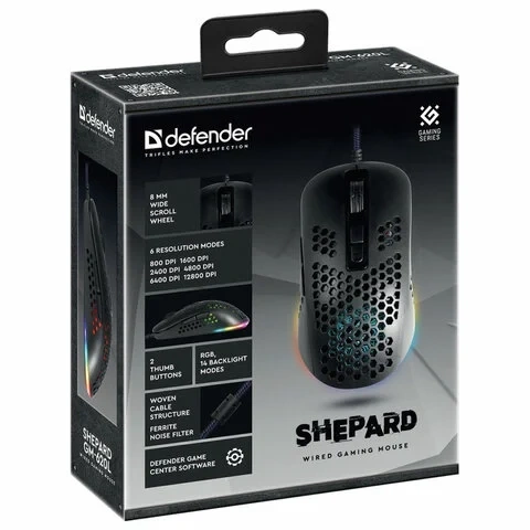 Мышь проводная игровая DEFENDER Shepard GM-620L, USB, 6 кнопок + 1 колесо-кнопка, оптическая, чёрная