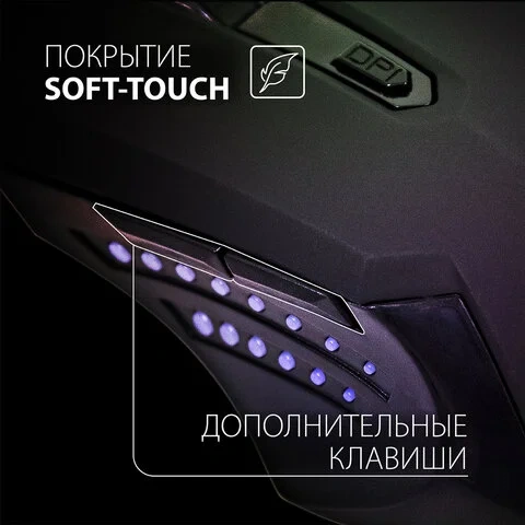 | Функционал мыши | подсветка, покрытие корпуса soft-touch |