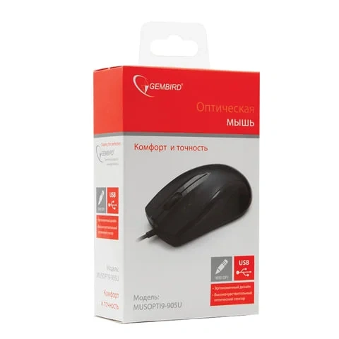 Мышь проводная оптическая USB Gembird MUSOPTI9-905U, 1000dpi, черная