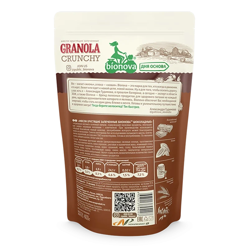 Мюсли Bionova запеченные, шоколадные, 400г