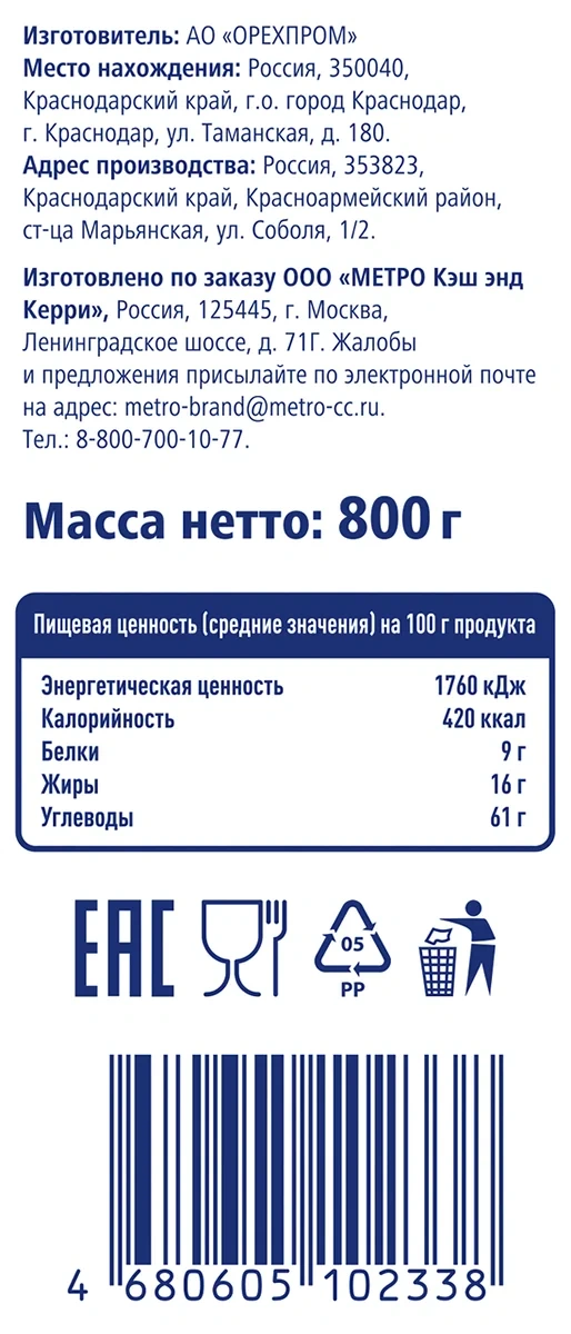 без гмо; без консервантов; без красителей; без пальмового масла