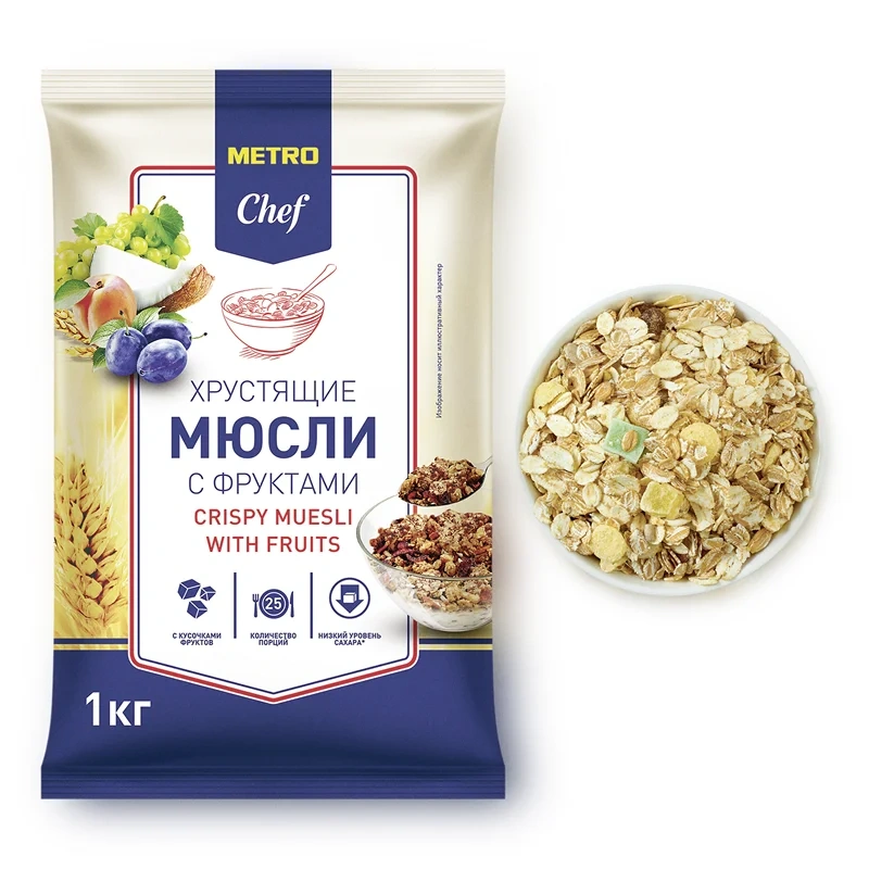 Мюсли Metro Chef с кусочками фруктов, хрустящие, 1кг