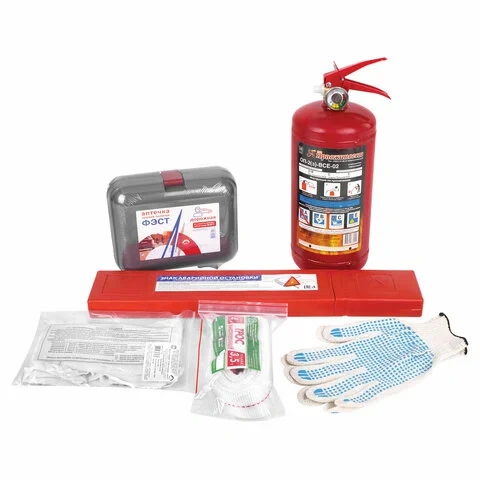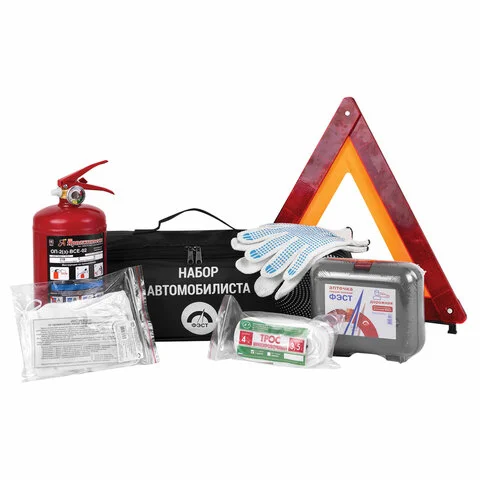 Набор автомобилиста АВТО: аптечка, огнетушитель ОП-2, знак аварийный остановки, трос буксировочный,