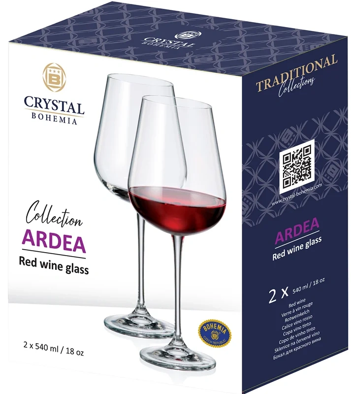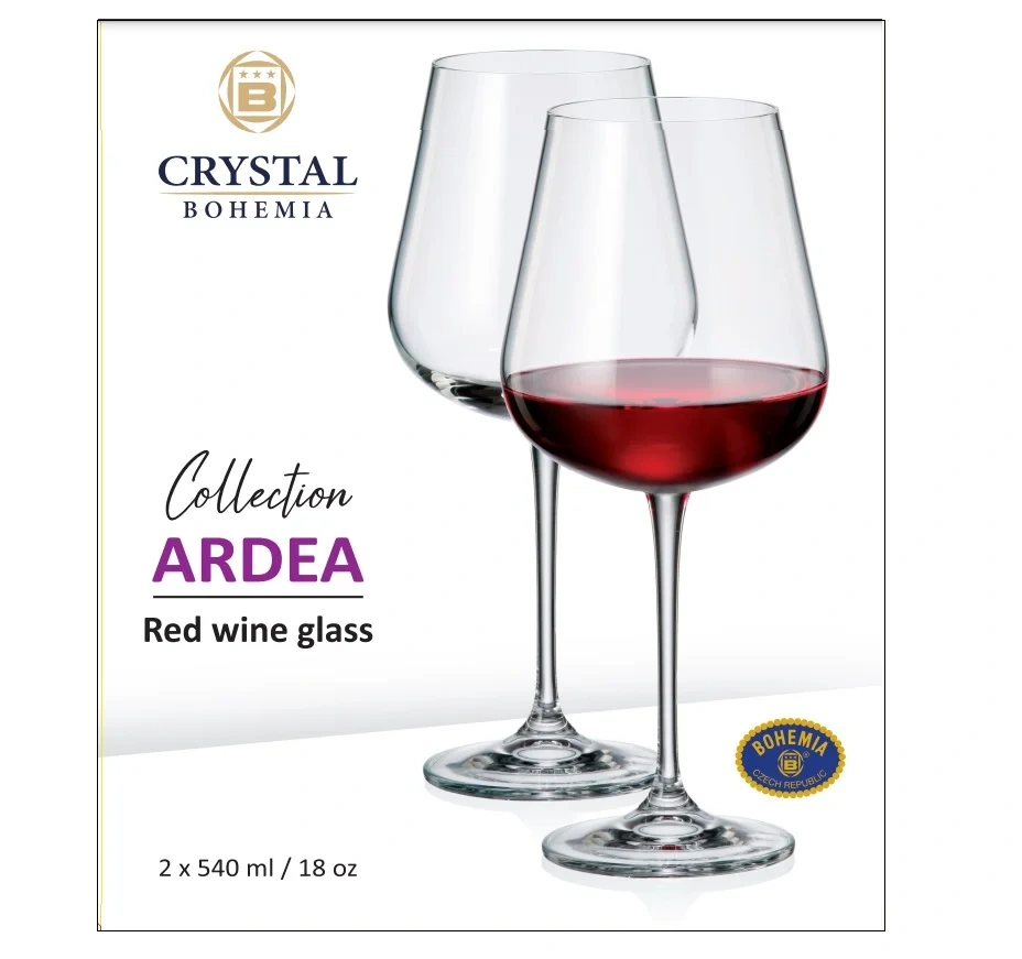 Набор из 2 бокалов на ножке для красного вина Ardea 540 мл торговой марки Crystal Bohemia. Изготовлены в Чешской Республике из экологически чистого стекла с добавлением оксида титана, то придает изделиям прочность и устойчивость к истиранию, большую долговечность, подходит для регулярного использования в посудомоечных машинах. Данная технология была специально создана и ориентирована на потребителей для профессионального использования.