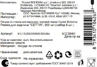 | Комплектация | бокал для мартини - 6 шт. |