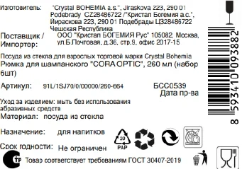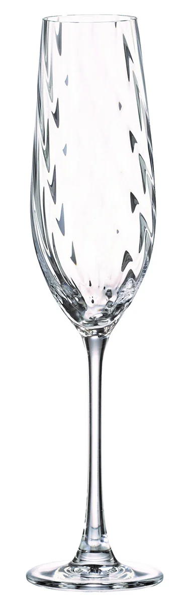 Набор из 6 бокалов на ножке для шампанского Cora Optic 260мл торговой марки Crystal Bohemia. Изготовлены в Чешской Республике из экологически чистого стекла с добавлением оксида титана, что придает изделиям прочность и устойчивость к истиранию, большую долговечность, подходит для регулярного использования в посудомоечных машинах. Данная технология была специально создана и ориентирована на потребителей для профессионального использования.