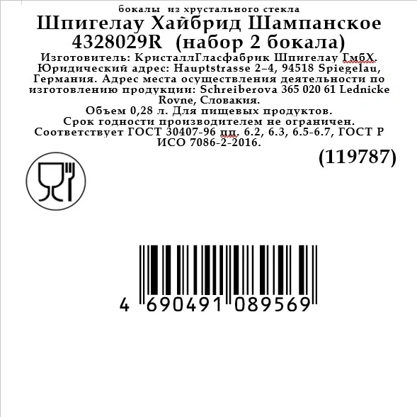 | Комплектация | фужер для шампанского - 2 шт. |