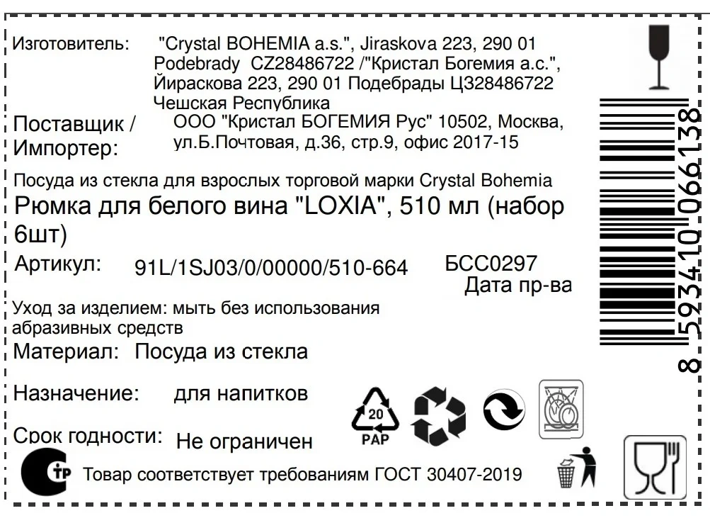| Комплектация | бокал для вина - 6 шт. |