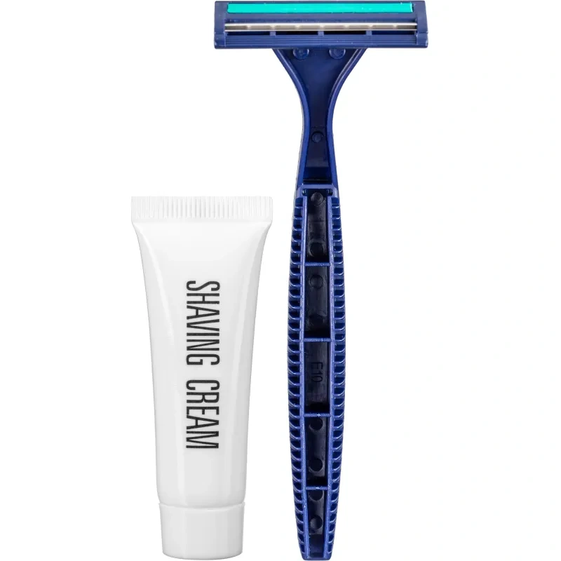 Набор бритвенный Luscan Gold Collection картон (бритва, крем для бритья, 200 штук в упаковке)Предназначен для индивидуального использования в гостиницах, отелях и во время поездок. В комплект входят одноразовая бритва с двумя лезвиями, увлажняющей полоской и съёмной защитной крышкой, а также крем для бритья в тюбике объёмом 10 мл. Крем обладает комфортной консистенцией и облегчает бритьё. Все элементы набора размещены в картонной коробке.