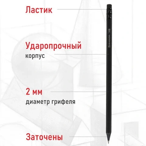 Покупайте чернографитные карандаши BRAUBERG 'Black Jack' по выгодной цене в нашем интернет-магазине!