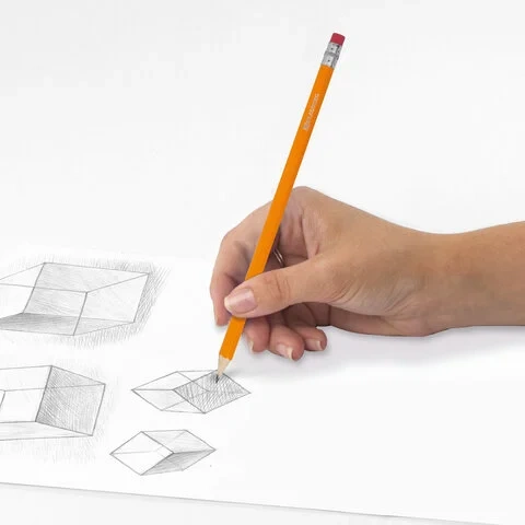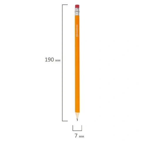 Изготовлены из дерева высокого качества, оснащены ластиком. Имеют шестигранное сечение. Карандаши длиной 190 мм легко точатся и не крошатся. Обладают средней степенью твердости – HB. Диаметр грифеля - 2,05 мм. Выполнены в желтом цвете. Поставляются заточенными.