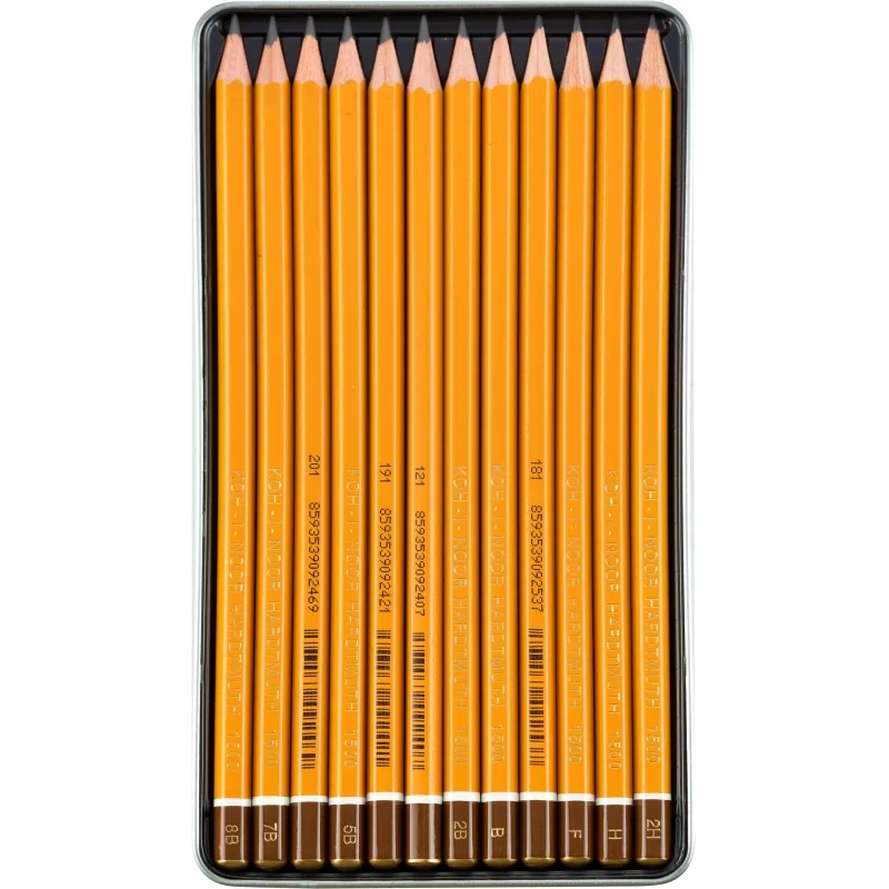 Набор чернографитных карандашей Koh-I-Noor 1502/2 Graphic 8B-2H, 12шт, металлический пенал