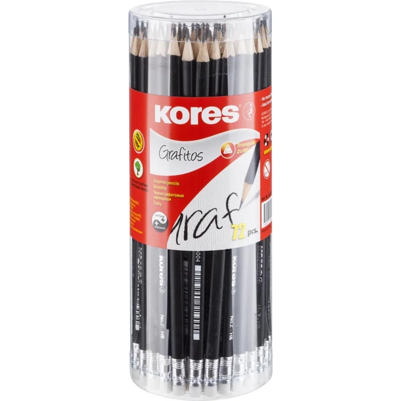 Набор чернографитных карандашей Kores Grafitos HB, трехгранные, с ластиком, 72шт