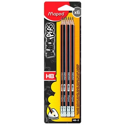 Набор чернографитных карандашей Maped Black Pep's HB, трехгранные, с ластиком, 6шт, 851731