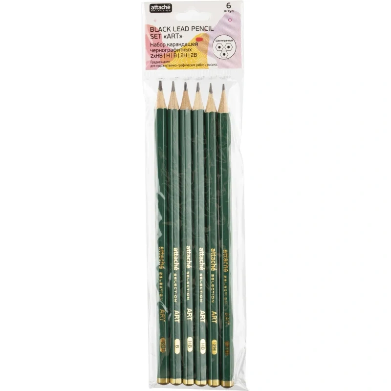 Набор чернографитных карандашей Attache Selection Art,2xHB,H,B,2H,2B,6шт/уп