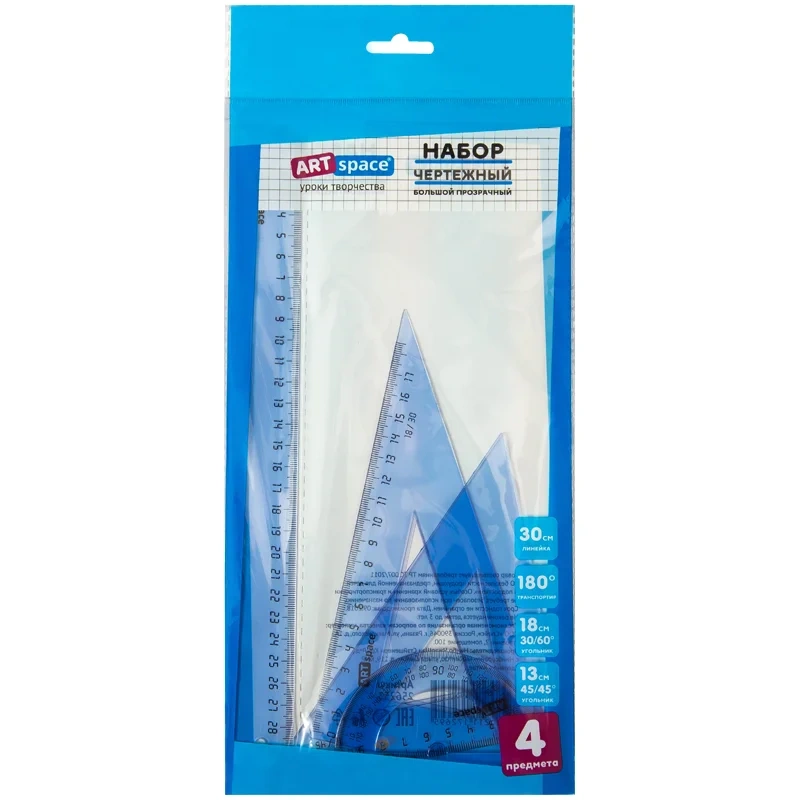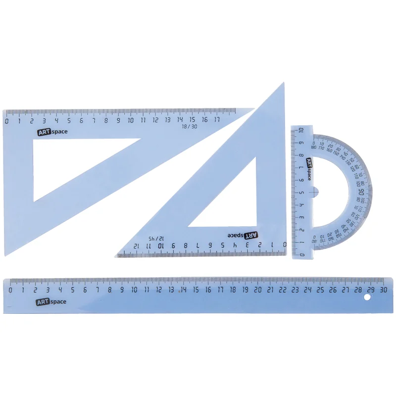 Набор чертежный большой ArtSpace, (треуг. 2шт., линейка 30см, транспортир), прозрачный тонированный