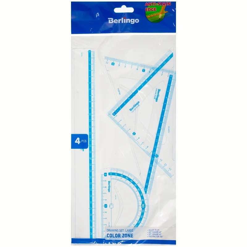 Набор чертежный большой Berlingo 'Color' (треуг. 2шт, линейка 30см, транспортир), прозрачный