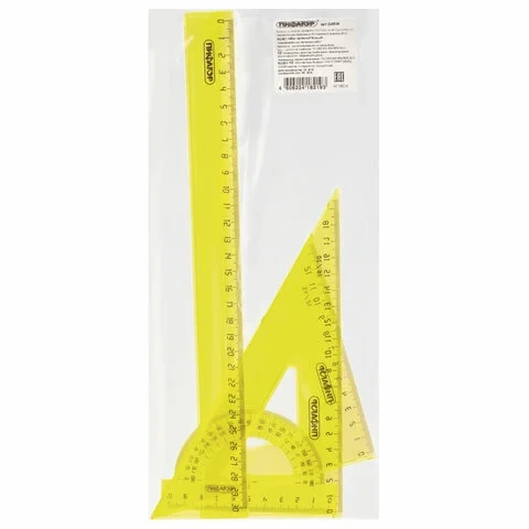 Набор чертежный большой ПИФАГОР (линейка 30 см, 2 треугольника, транспортир), прозрачный, неоновый,