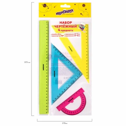 | Комплектация | большой треугольник, линейка, малый треугольник, транспортир |