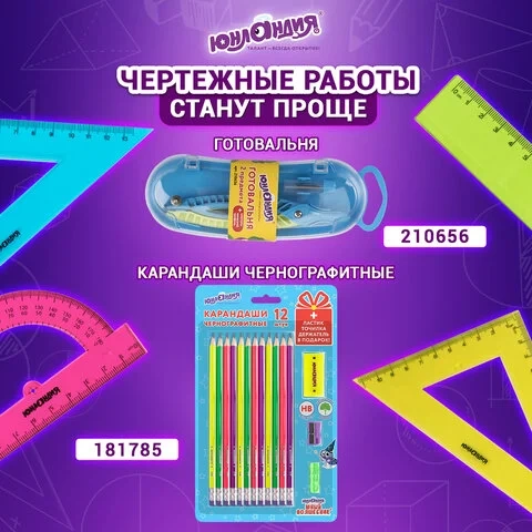 Набор чертежный большой ЮНЛАНДИЯ 'Color', (линейка 30 см, 2 треугольника, транспортир), 210756