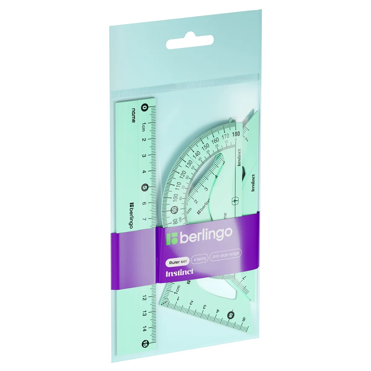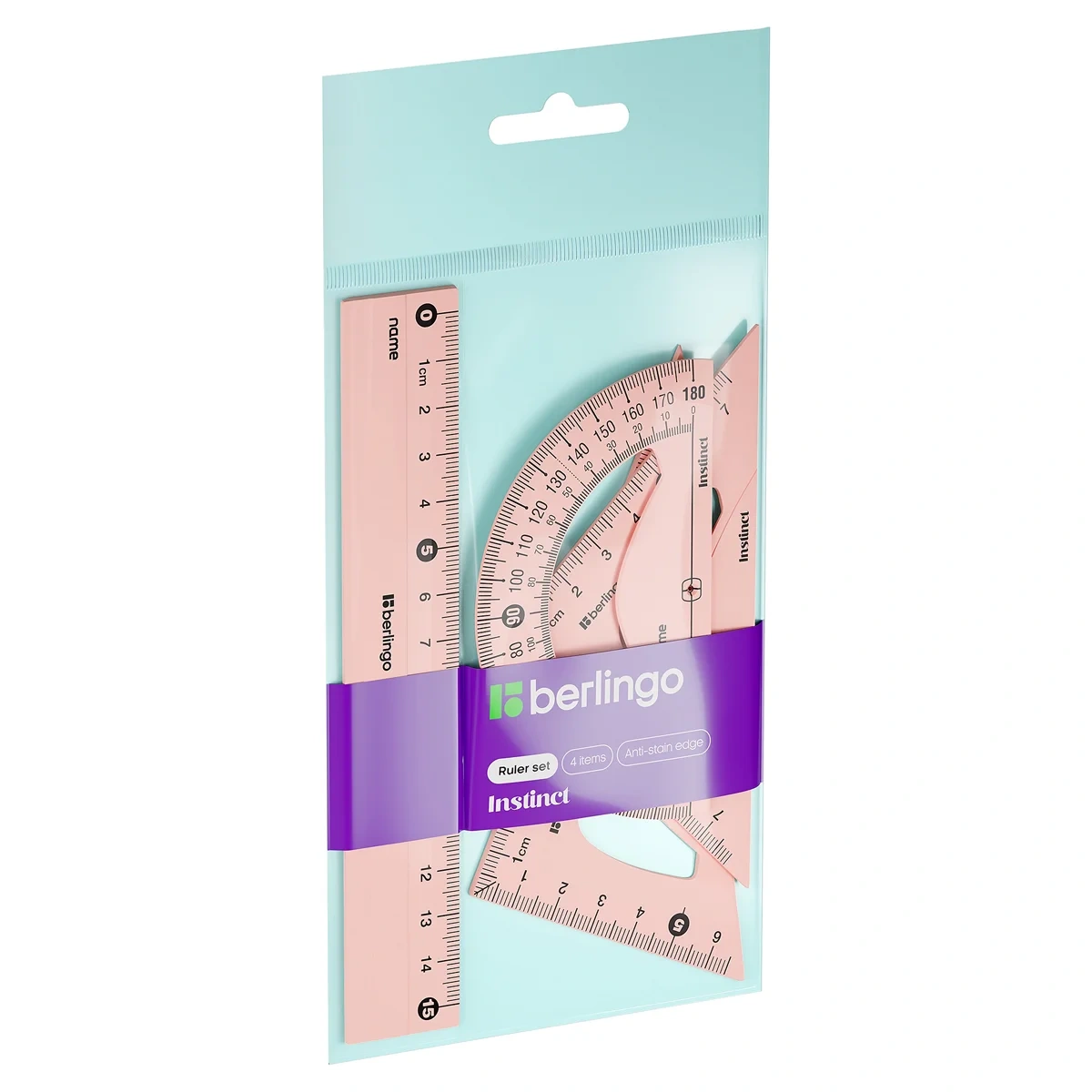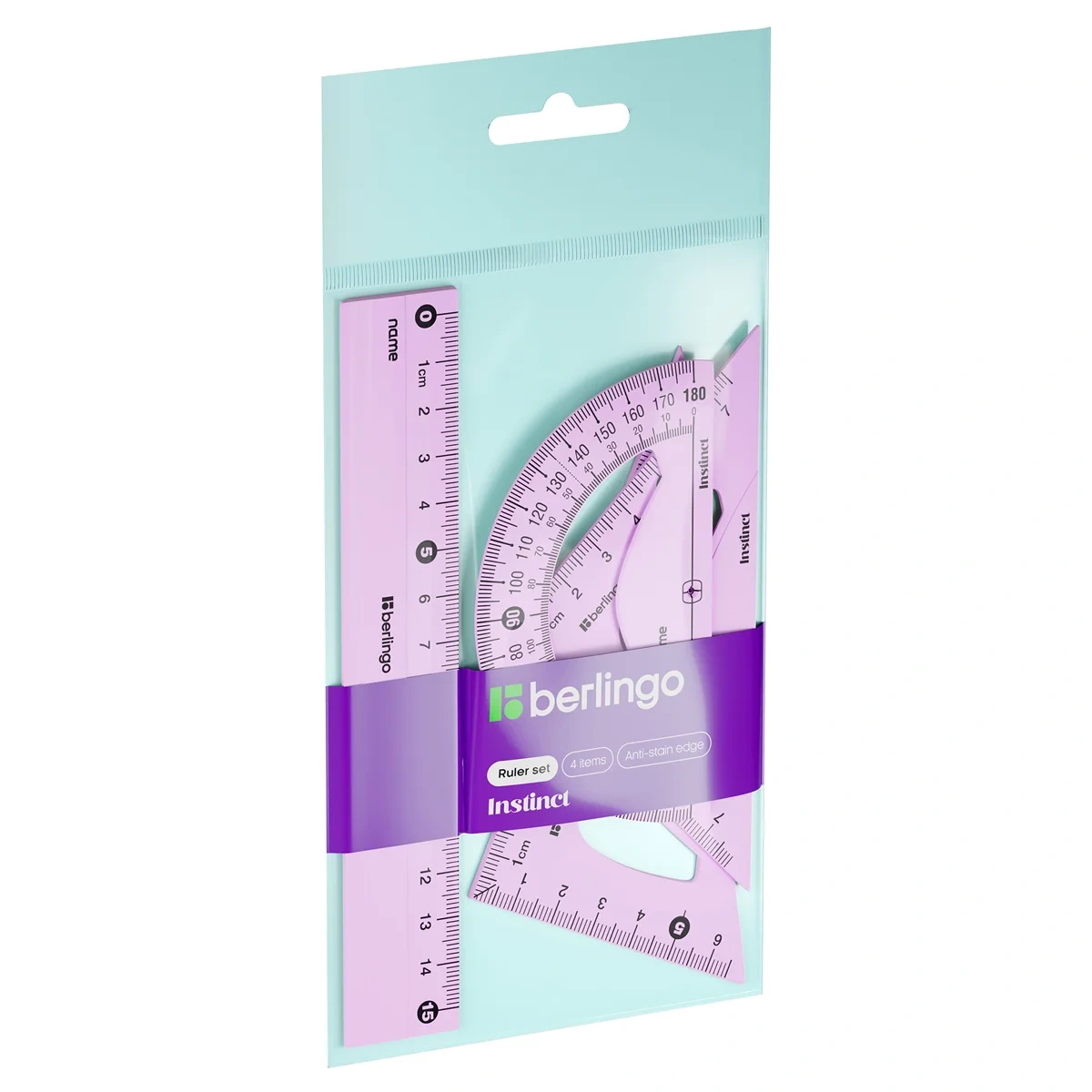 Пластиковый чертежный набор Berlingo выполнен в стиле кросс-серии Instinct: сочетание пастельных цветов с контрастным черным.