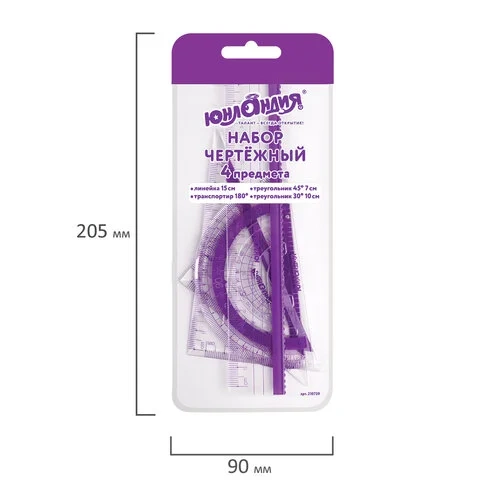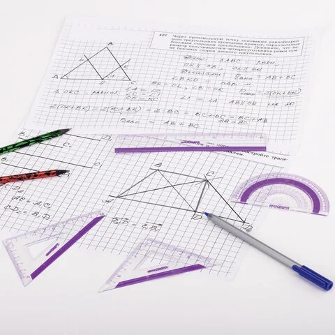 | Комплектация | большой треугольник, линейка, малый треугольник, транспортир |