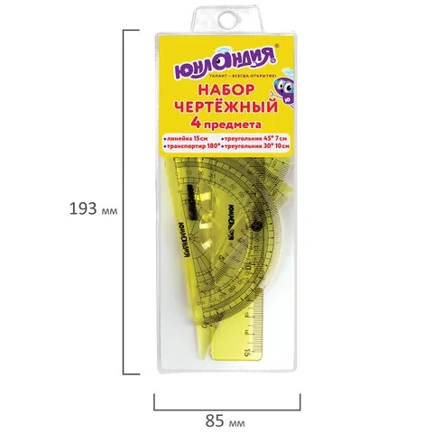 | Комплектация | большой треугольник, линейка, малый треугольник, транспортир |