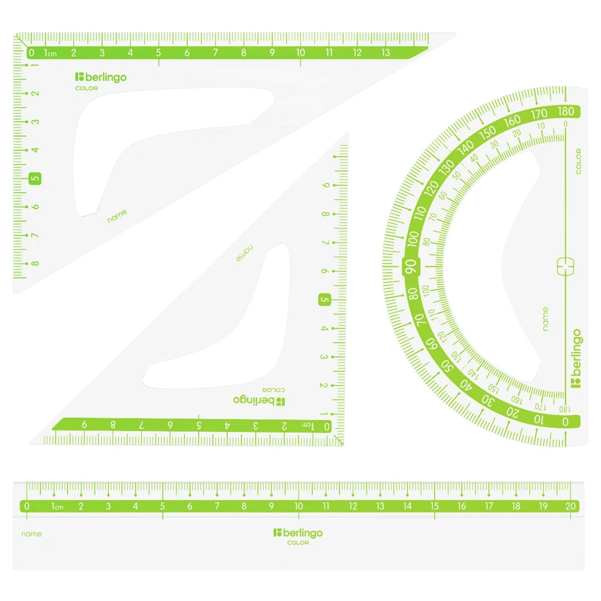 Набор чертежный средний Berlingo 'Color' (треуг. 2шт, линейка 20см, транспортир), прозрачный