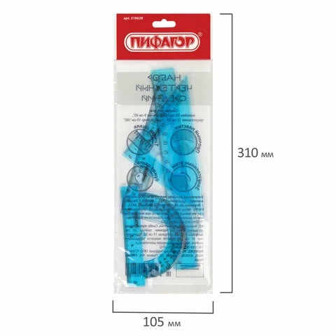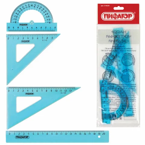 | Комплектация | большой треугольник, линейка, малый треугольник, транспортир |