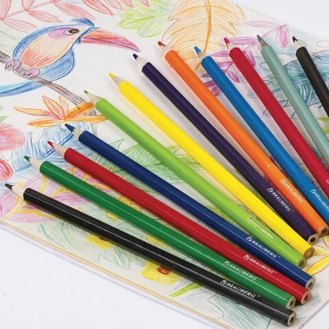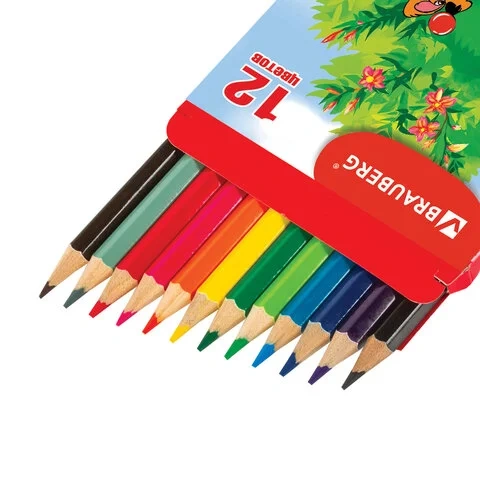 Набор состоит из 12 цветов: розовый, красный, желтый, оранжевый, бирюзовый, салатовый, зеленый, голубой, синий, фиолетовый, коричневый, черный. Шестигранная форма сечения корпуса позволяет не скатываться карандашу с поверхности стола во время занятий рисованием. Они изготовлены из древесины ценных пород и имеют лакированный корпус. Высокосортная древесина и качество исполнения гарантируют легкую заточку. Грифель диаметром 3 мм обладает повышенной прочностью. Все карандаши заточены и поставляются в картонной упаковке с европодвесом.