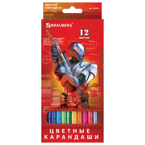 Набор цветных карандашей Brauberg Star Patrol 12 цветов, шестигранный корпус