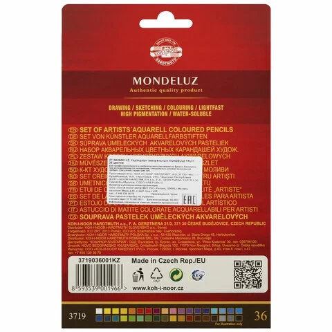 Набор акварельных карандашей Koh-I-Noor Mondeluz 36 цветов, 3719
