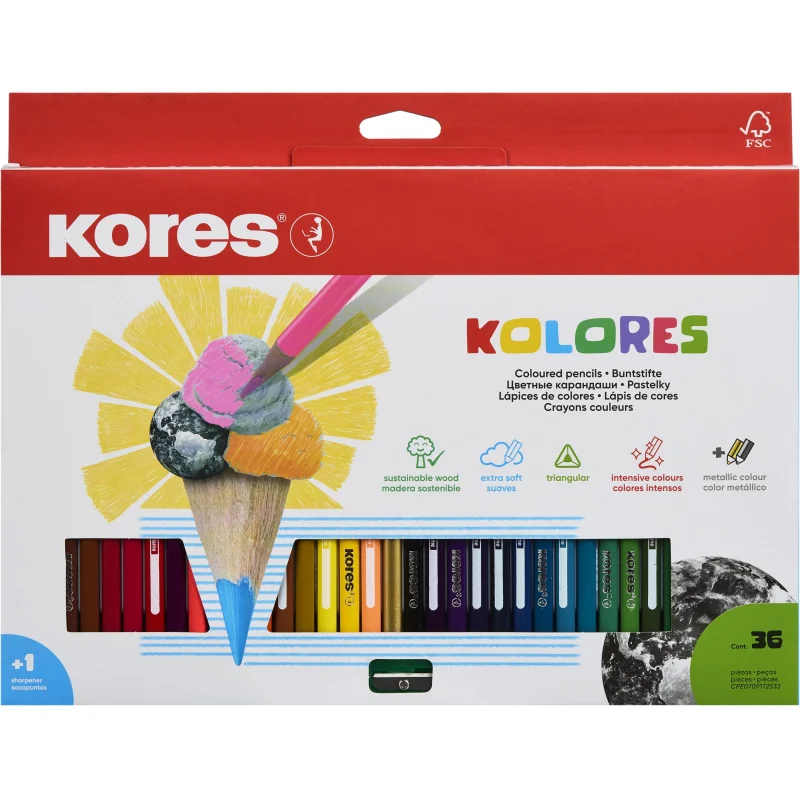 Карандаши цветные Kores Kolores 36 карандашей 36 цветов трёхгранные