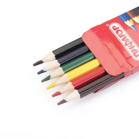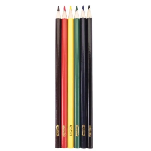 Набор состоит из 6 цветов: красный, желтый, зеленый, синий, черный. Шестигранная форма сечения корпуса позволяет не скатываться карандашу с поверхности стола во время занятий рисованием. Они изготовлены из высокосортной белой древесины ценных пород и имеют лакированный корпус. Качество древесины и исполнения гарантируют легкую заточку. Грифель из натуральных материалов и пигментов диаметром 3 мм обладает повышенной прочностью. Все карандаши заточены и поставляются в картонной упаковке с европодвесом.