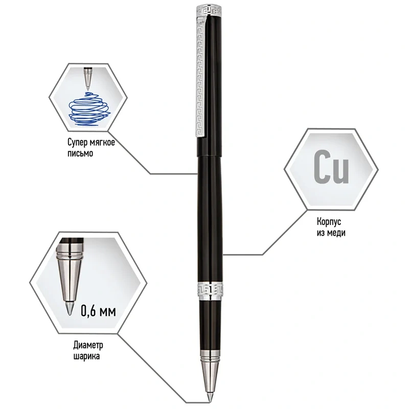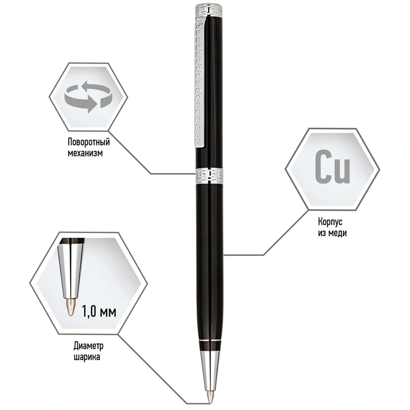 Подарочный набор Delucci Classico – это идеальный презент даже для самого требовательного руководителя. Медь и никелированное покрытие делают ручки прочными, а оригинальный орнамент добавляют индивидуальности. С помощью клипа из нержавеющей стали ручки можно закрепить на ежедневнике или кармане. Благодаря диаметру пишущего узла 0,6 мм автоматическая ручка-роллер будет оставлять аккуратный след 0,5 мм и подойдёт для любого стиля письма. Шариковая ручка с поворотным механизмом оставит заметную и яркую линию на бумаге в 0,7 мм. Упакованы в футляр с откидной крышкой.