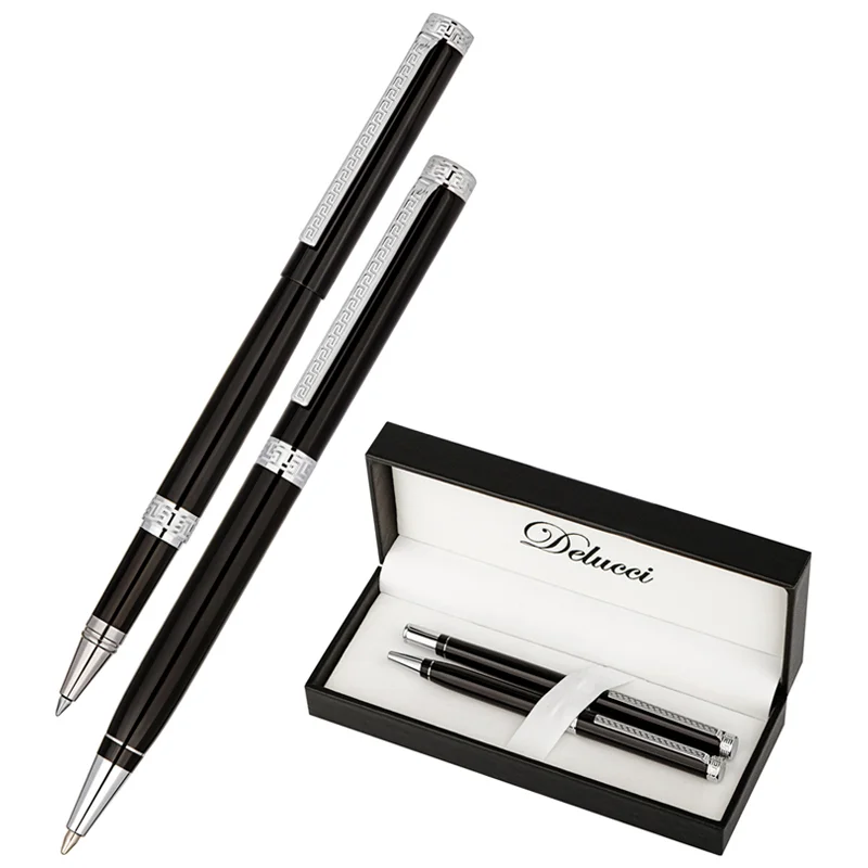 Набор Delucci 'Classico': ручка шарик., 1мм и ручка-роллер, 0,6мм, синие, корпус черный, подарочная