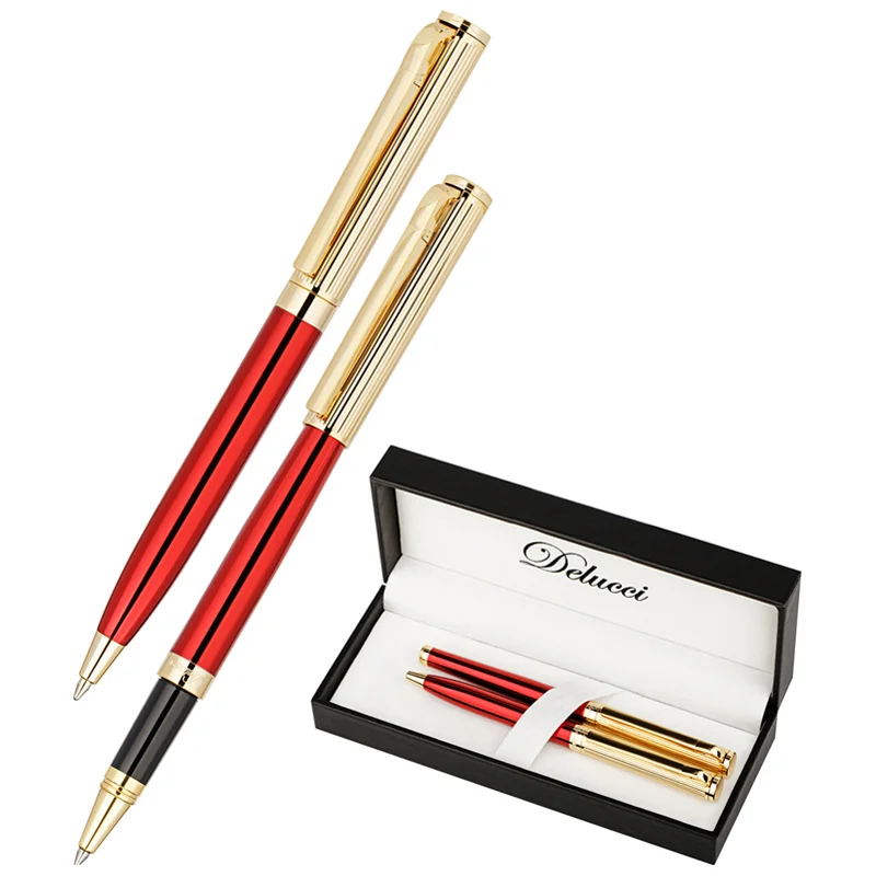 Набор Delucci 'Rosso': ручка шарик., 1мм и ручка-роллер, 0,6мм, синие, корпус вишн/зол., подарочная