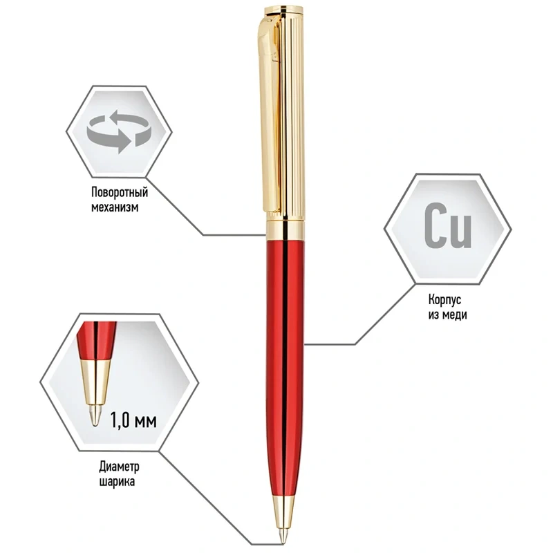 Подарочный набор ярких ручек Delucci Rosso с синими чернилами – это дуэт изящности и практичности, который привлечет внимание великолепным сочетанием глубокого вишневого и золотого цвета. Корпус из меди обеспечит прочность и долговечность изделий, а клипы из нержавеющей стали помогут закрепить ручки на ежедневнике, папке или кармане. Обладатель набора может выбрать ручку-роллер с линией 0,5 мм для быстрой записи или шариковую ручку с поворотным механизмом и толщиной линии 0,7 мм для мягкого и вдумчивого письма. Упакованы в футляр с откидной крышкой.