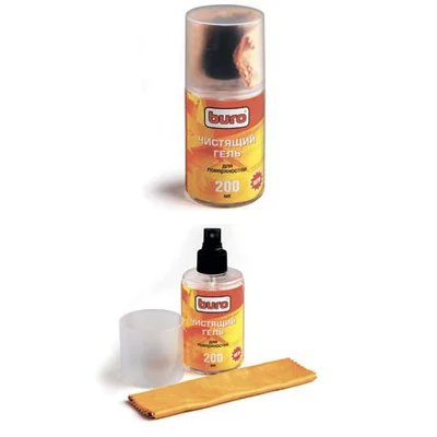 Эффективный чистящий комплект «BURO» состоящий из геля-очистителя помпового типа и салфетки из микроволокна (микрофибры). Предназначен для очистки пластиковых поверхностей корпусов мониторов, системных блоков, клавиатур, другого офисного оборудования, бытовой техники.