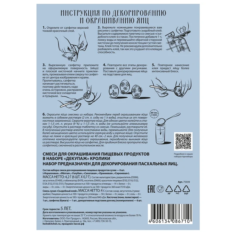 Набор для декорирования яиц Домашняя кухня Декупаж кролики, 4г