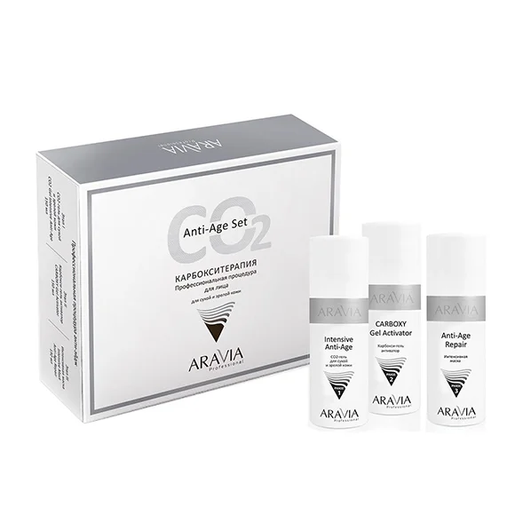 Набор для лица Aravia Anti-Age Set, для сухой и зрелой кожи, карбокситерапия CO2, 150мл х 3шт
