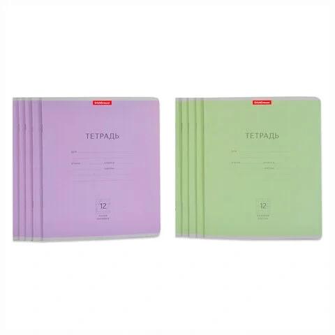 Тетрадь ученическая, 12 л., 'Классика', зеленая обложка, большая клетка - 5 шт.