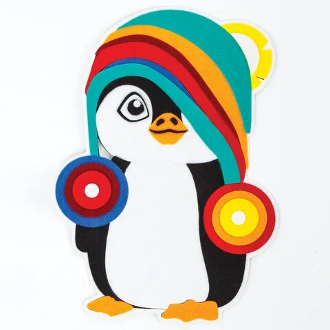 В набор входит яркая картонная основа в форме пингвина размером не более 20х15 см с напечатанным дизайном аппликации, разработанным дизайнерами ЮНЛАНДИЯ специально для детей, а также 8 листов фетра разных цветов. Фетровые элементы аппликации перфорированы и имеют клеевой слой, что позволяет создать аппликацию без клея и ножниц. Также в набор входит картонная подставка с клеевым слоем, на которую можно установить готовую аппликацию.