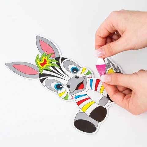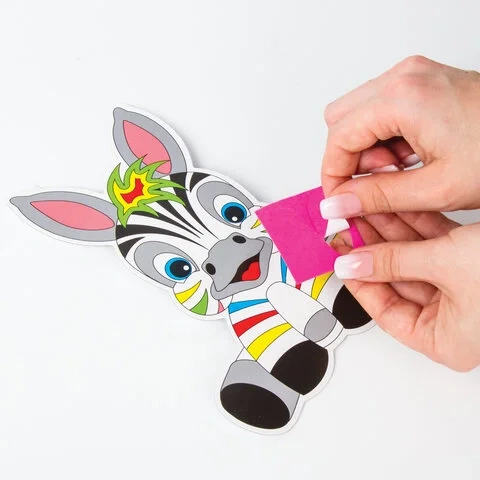 В набор входит яркая картонная основа в форме зебры размером не более 20х15 см с напечатанным дизайном аппликации, разработанным дизайнерами ЮНЛАНДИЯ специально для детей, а также 8 листов фетра разных цветов. Фетровые элементы аппликации перфорированы и имеют клеевой слой, что позволяет создать аппликацию без клея и ножниц. Также в набор входит картонная подставка с клеевым слоем, на которую можно установить готовую аппликацию.