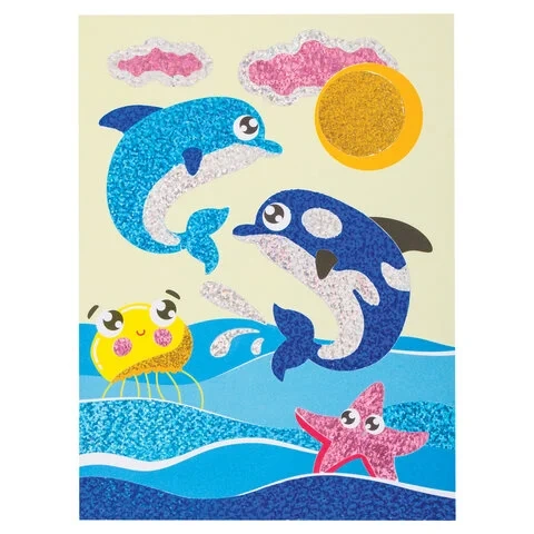 Набор для творчества 'Аппликация из фольги', 'Дельфинчики', самоклеящаяся основа 20х15 см, ЮНЛАНДИЯ,