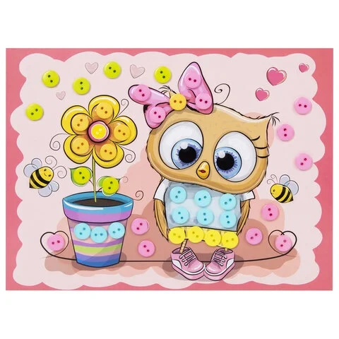 Набор для творчества 'Аппликация из пуговиц', 'Забавная сова', основа 20х15 см, ЮНЛАНДИЯ, 662391