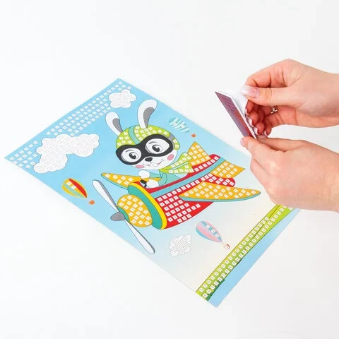 Сюжеты разработаны дизайнерами ЮНЛАНДИЯ специально для детей. Квадратные элементы аппликации перфорированы и имеют клеевой слой, что позволяет создать аппликацию без клея и ножниц.